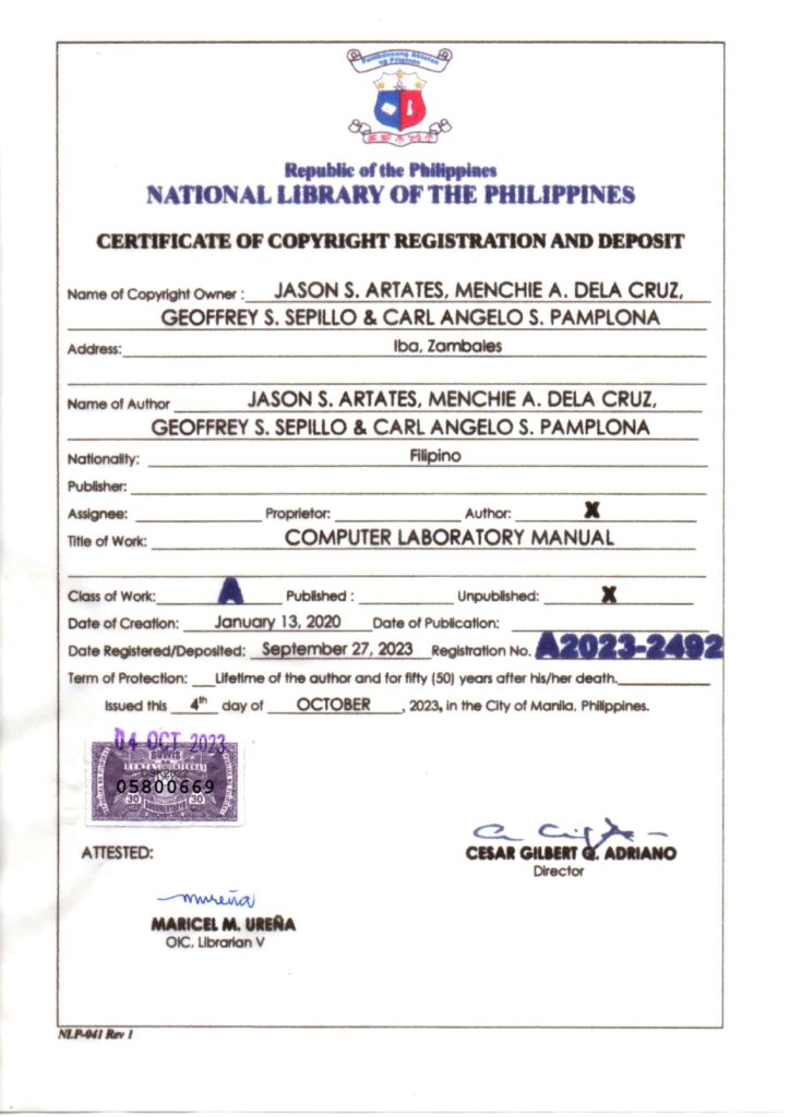 Copyrighted Learning Materials, Computer Software and Manual