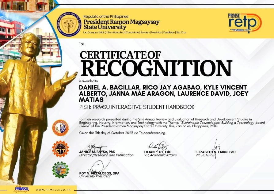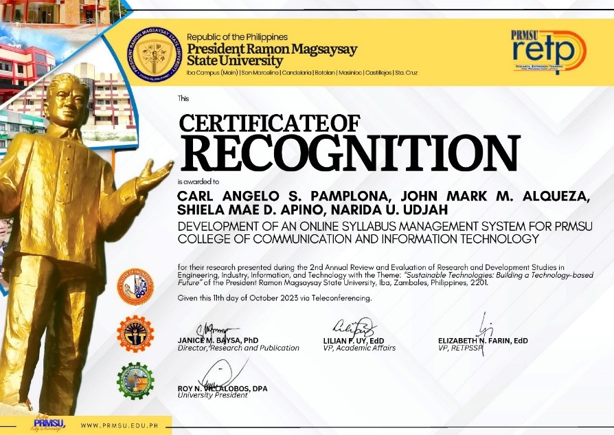 Pamplona, Carl Angelo S., Sepillo, Geoffrey S.,  Dela Cruz, Menchie A.